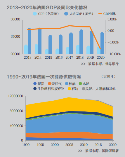 法國化石資源匱乏,國內煤炭資源已經枯竭,早在21世紀初,法國最后一個煤礦就完成了閉井,成為煤炭凈進口國,其本土石油和天然氣資源也較少。