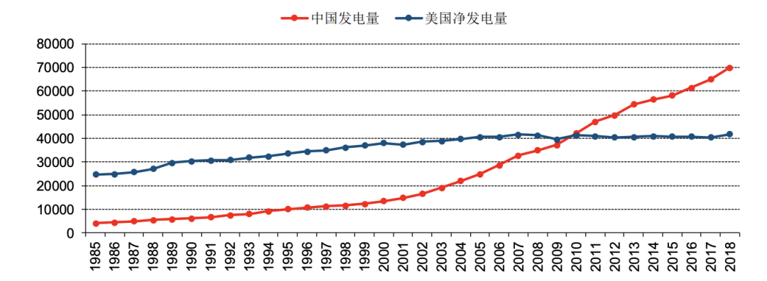 中美歷史發(fā)電量對比(單位:億千瓦時)