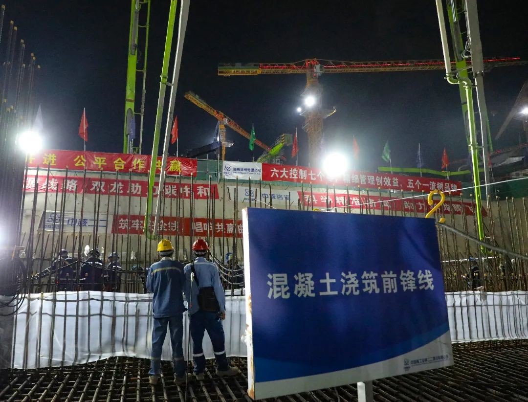 本次4號(hào)常規(guī)島汽輪機(jī)筏基于2022年4月4日通過(guò)綜合隱蔽驗(yàn)收,4月14日完成FCD前質(zhì)量監(jiān)督檢查轉(zhuǎn)序工作,提前半個(gè)月具備澆筑條件。FCD澆筑區(qū)域長(zhǎng)約65.5m,寬約23m,厚3m,西側(cè)高低跨區(qū)域局部厚5m,為大體積現(xiàn)澆鋼筋混凝土結(jié)構(gòu),澆筑方量約4300m³,預(yù)計(jì)總澆筑時(shí)長(zhǎng)55小時(shí)。