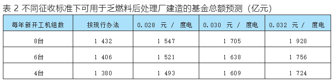 4.2上調(diào)征收標(biāo)準(zhǔn)對可用于我國乏燃料后處理廠建造的基金的影響