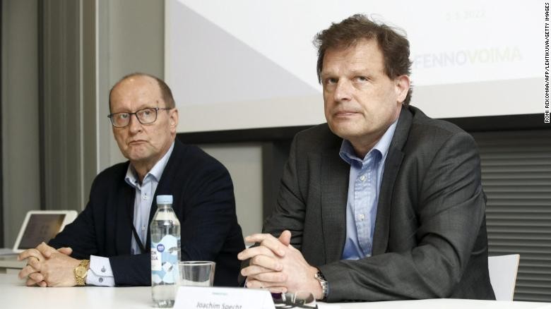 Fennovoima 董事會(huì)主席 Esa Harmala(左)和首席執(zhí)行官 Joachim Specht(右)出席 2022 年 5 月 2 日在芬蘭赫爾辛基舉行的新聞發(fā)布會(huì)。