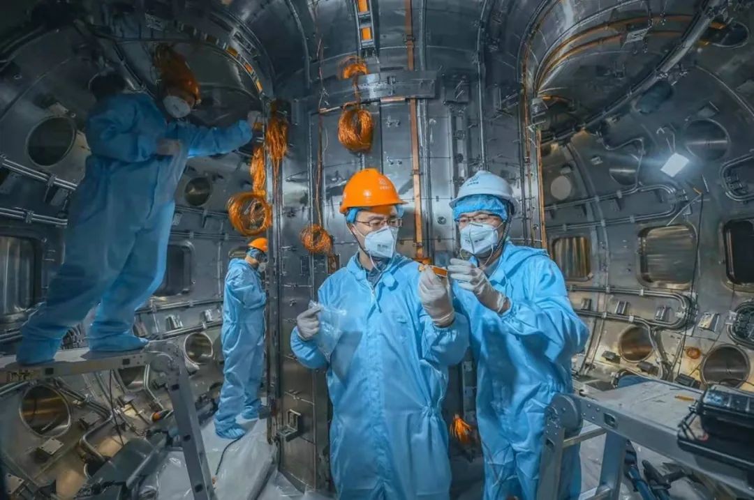 經(jīng)過高強(qiáng)度攻關(guān),團(tuán)隊(duì)在裝置特殊材料研制、關(guān)鍵部件研發(fā)、總裝集成等方面取得了多項(xiàng)突破。團(tuán)隊(duì)研發(fā)出國內(nèi)首創(chuàng)特殊材料,制造出我國首臺(tái)D形截面特材雙層雙曲率薄壁件全焊接環(huán)狀超高真空容器;打破被美國禁售的“卡脖子”技術(shù)壁壘和封鎖,制造出國內(nèi)無生產(chǎn)先例的大尺寸高強(qiáng)度膨脹螺栓,生產(chǎn)成本降低近90%;研制出國內(nèi)首臺(tái)完全自主知識產(chǎn)權(quán)的大型立軸脈沖發(fā)電機(jī)組,其發(fā)電量可負(fù)擔(dān)一座百萬級人口城市的基本用電量,部分指標(biāo)已“領(lǐng)跑”國際;全面系統(tǒng)掌握了大型托卡馬克裝置總裝集成技術(shù),實(shí)現(xiàn)了磁體線圈中心柱、真空室等大型核心部件的精準(zhǔn)定位和精密安裝。