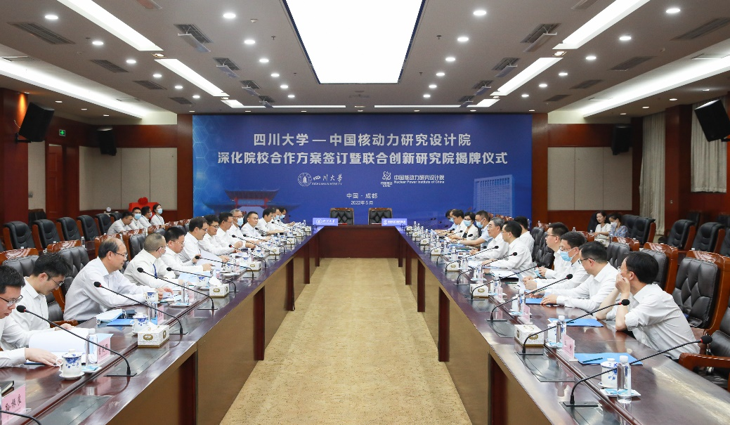 5月7日,中國核動力研究設(shè)計院與四川大學(xué)在成都舉行深化院校合作方案簽訂暨聯(lián)合創(chuàng)新研究院揭牌儀式。四川大學(xué)黨委書記王建國、副校長褚良銀,院黨委書記萬鋼、院長王叢林、顧問周定文及校院雙方相關(guān)單位負(fù)責(zé)人出席儀式,儀式由周定文主持。