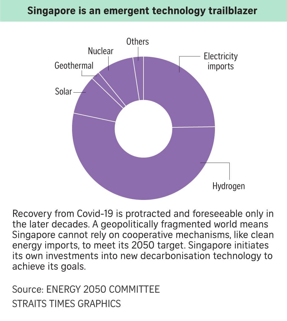 除了核能之外,目前正在探索其他新興的低碳替代品。其中之一是氫氣,它將成為主要的能源供應來源,盡管其運輸和儲存成本相對較高,但到 2050 年將占新加坡能源組合的 50% 以上。這個東南亞島嶼還計劃到2035 年從低碳來源 進口近 30%的電力供應。
