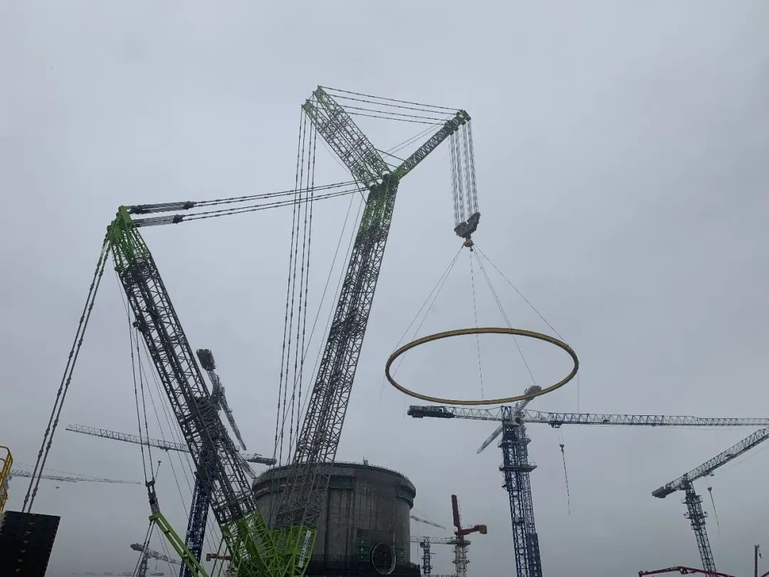 2022年05月24日,漳州核電2號機組環吊首鉤—環承梁整體吊裝就位,施工過程質量安全受控。