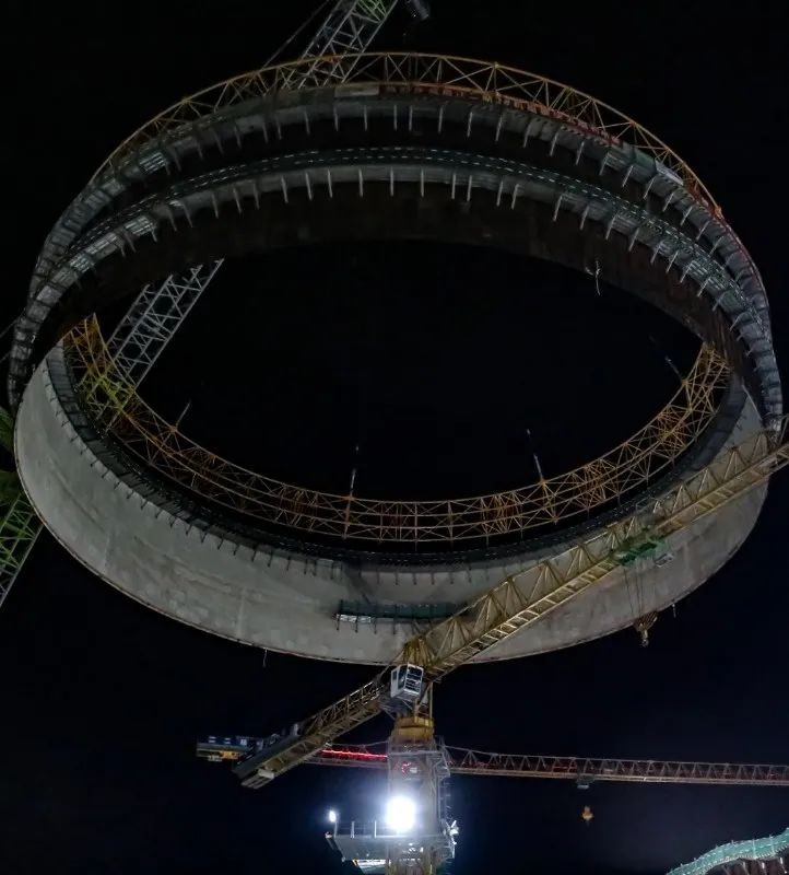 由于近期現(xiàn)場(chǎng)風(fēng)力不穩(wěn)定,華能海南昌江核電有限公司聯(lián)合現(xiàn)場(chǎng)各參建單位研究制定應(yīng)對(duì)措施,密切關(guān)注現(xiàn)場(chǎng)風(fēng)速變化情況,在做好現(xiàn)場(chǎng)夜間照明等各項(xiàng)準(zhǔn)備工作的前提下,決定在6月17日晚22時(shí)35分開(kāi)始模塊五的吊裝,在經(jīng)過(guò)起吊、變幅、旋轉(zhuǎn)、提升、吊車(chē)行走、就位等一系列動(dòng)作后,鋼襯里模塊五與模塊四精準(zhǔn)對(duì)接。