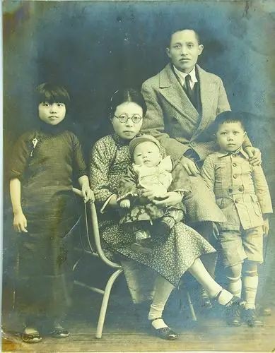 1933年全家照(左起:姐姐王世縚、母親錢錦德、