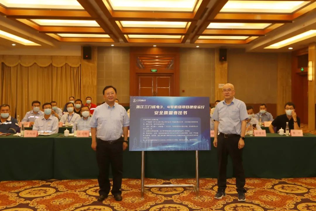 三門核電黨委書記、董事長繆亞民承諾將恪守核安全文化理念,堅持“安全第一、質量第一”方針,按照“嚴慎細實”要求推進三門核電3、4號機組高質量建設和安全穩定運行,把三門核電3、4號機組建設成為國家優質、精品工程。