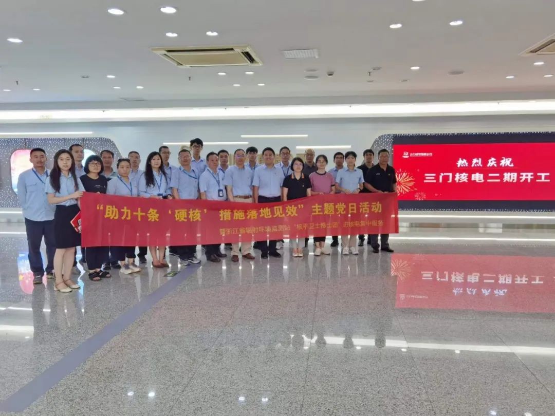 在中國共產(chǎn)黨成立101周年之際,生態(tài)環(huán)境部輻射環(huán)境監(jiān)測技術(shù)中心(浙江省輻射環(huán)境監(jiān)測站,以下簡稱輻射環(huán)境監(jiān)測技術(shù)中心)貫徹落實黨中央、國務(wù)院、浙江省委省政府關(guān)于穩(wěn)住經(jīng)濟(jì)大盤的決策部署,堅持“黨建紅引領(lǐng)生態(tài)綠”工程,為確保浙江省生態(tài)環(huán)境廳助力經(jīng)濟(jì)穩(wěn)進(jìn)提質(zhì)攻堅行動“十條政策措施”落地見效,組建了由電離室黨支部、質(zhì)信室黨支部5名博士組成的“核平衛(wèi)士博士團(tuán)”,走進(jìn)三門核電為三門核電二期順利開工提供集中服務(wù),聯(lián)合開展“助力十條‘硬核’措施落地見效”主題黨日活動。三門核電有限公司相關(guān)負(fù)責(zé)人及環(huán)境應(yīng)急黨支部、化學(xué)黨支部的黨員代表參加了此次活動。
