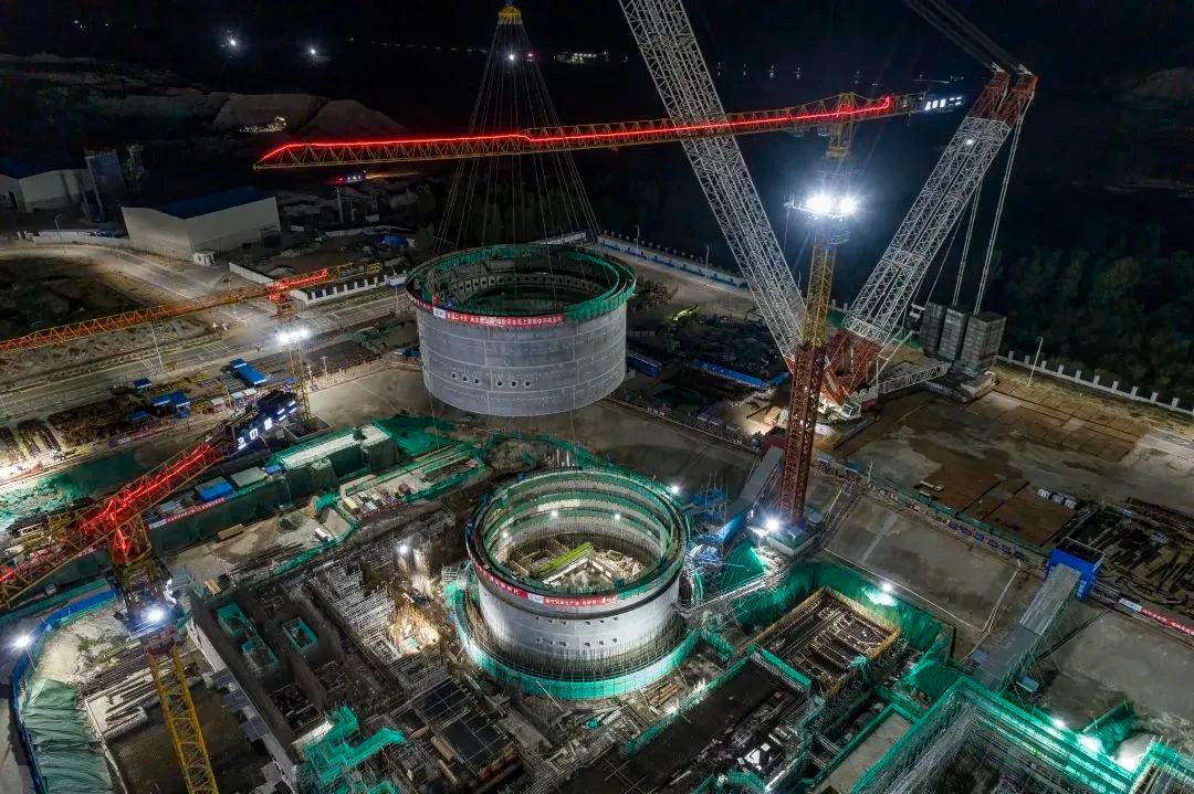 本次吊裝的鋼制安全殼上部筒體整體高度約15米,吊裝重量約720噸,是玲龍一號(hào)工程單次重量最大的一次吊裝。鋼制安全殼上部筒體整體由4層共32個(gè)瓣片拼裝而成,現(xiàn)場采用了工廠化制造、模塊化施工的先進(jìn)建設(shè)模式,優(yōu)化了現(xiàn)場施工邏輯,有效節(jié)約了現(xiàn)場施工工期,為反應(yīng)堆土建結(jié)構(gòu)與鋼結(jié)構(gòu)協(xié)同推進(jìn)創(chuàng)造了條件。