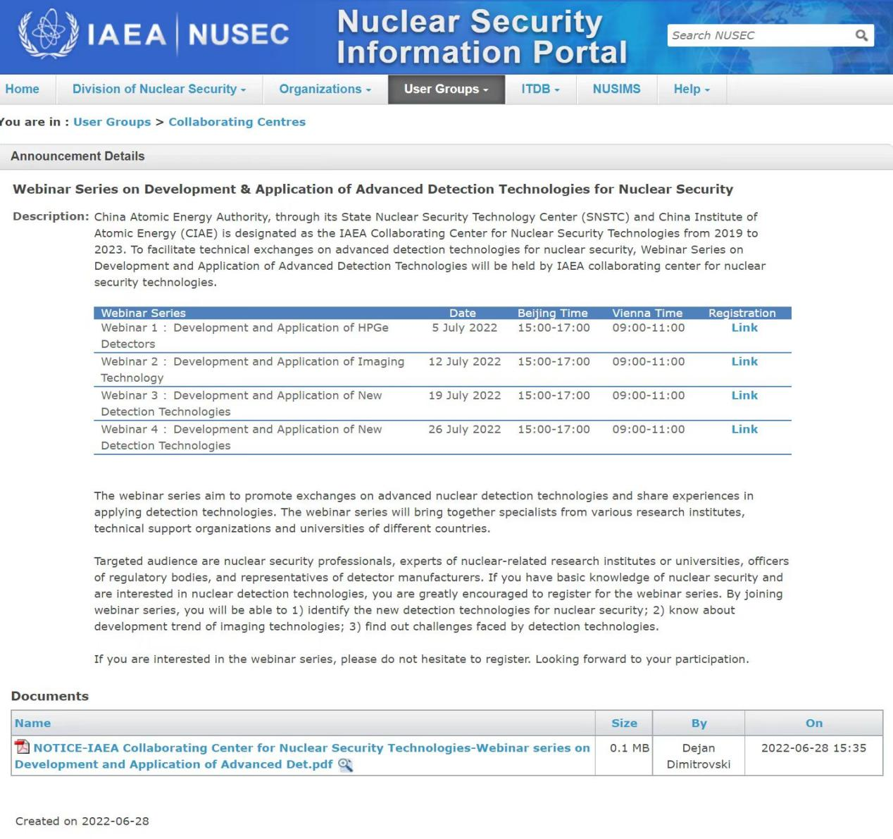 本次研討班是技術協作中心框架下核安保先進探測技術的應用和發展系列網絡研討班(共舉辦四