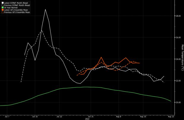 法國電力公司在一份提交給電網運營商RTE的文件中說,加龍河的高溫意味著該國南部的Golfech核電站可能從周四開始限制生產。據預報員Maxar稱,法國和伊比利亞地區的溫度在未來五天將遠遠高于平均水平,下周甚至更熱。