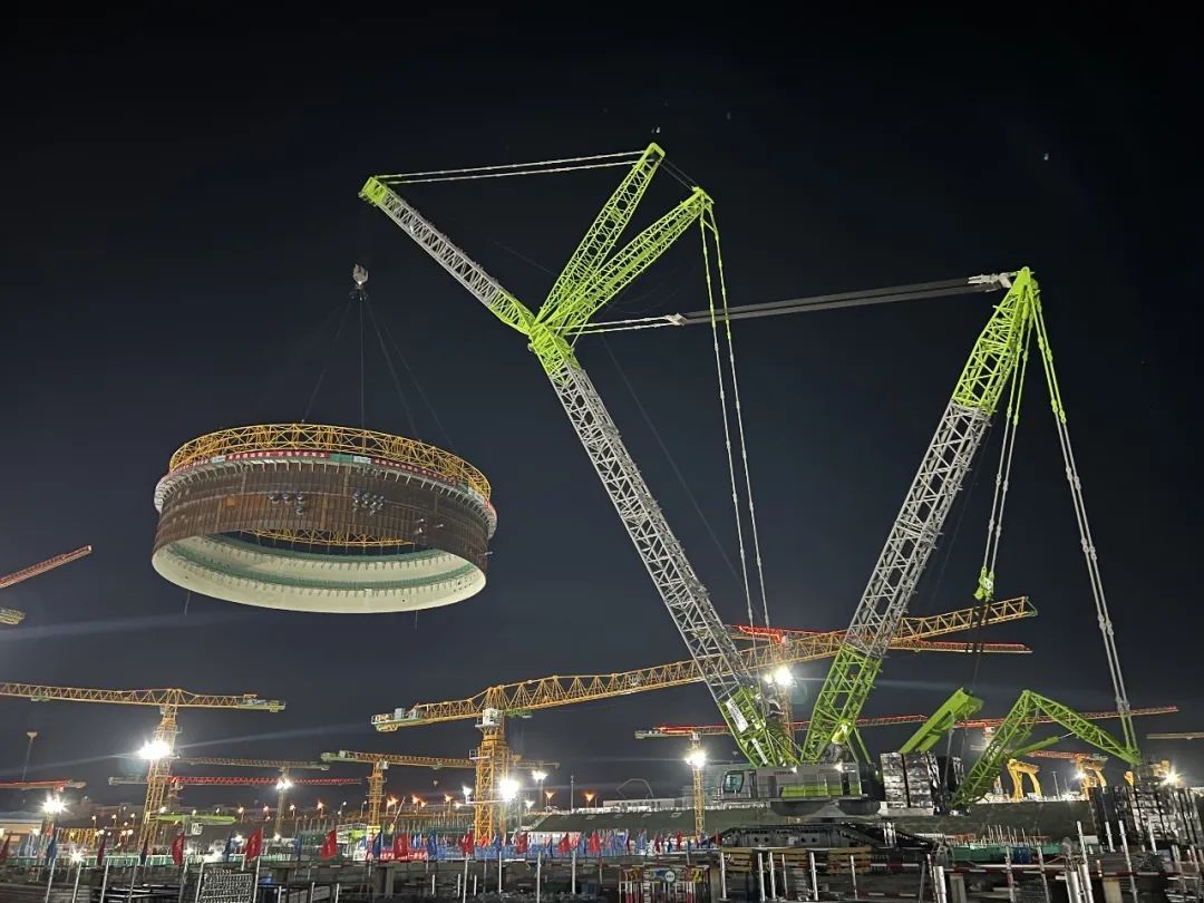2022年7月16日晚19時16分,海南昌江核電4號機組核島鋼襯里模塊二正式起吊,歷經試吊、起鉤、提升、旋轉、變幅、行走等一系列動作,歷時2小時整,當晚21時16分順利就位,與下部鋼襯里模塊一精準對接,為后續海南昌江核電4號機組核島人員、應急閘門套筒安裝打下堅實基礎。