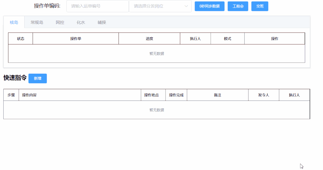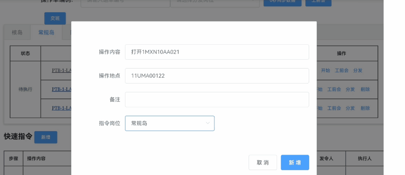 快速指令模塊和臨時操作單編寫模塊分別用于單一指令和臨時操作單在線使用,實(shí)現(xiàn)操作指令的標(biāo)準(zhǔn)化,改變原有的電話下指令方式,大大降低人因失誤可能性。