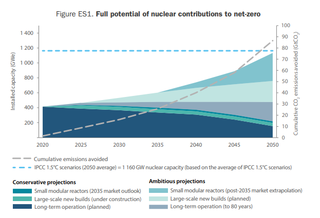 核能機構指出,為實現本世紀末1.5°C的溫升目標,核電裝機容量到2050年須達到11.6億千瓦。為推進核能大規模可持續發展,全球各國需加快核技術研發和創新速度,延長在運機組運行壽期,同時加快第三代機組的部署和第四代機組的研發等。此外,核能機構強調,當前全球已探明的可開采鈾資源足以支持實現上述核電發展目標。