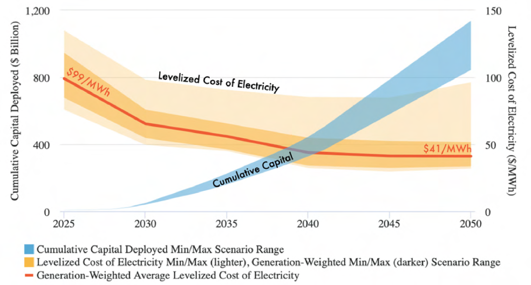 到2050年先進(jìn)核能將成為美國(guó)電力結(jié)構(gòu)的重要組成部分,因此先進(jìn)核能的成本將在很大程度上影響全國(guó)零售電價(jià)。早期的資本投資和積累的建設(shè)經(jīng)驗(yàn)?zāi)軌蚴瓜冗M(jìn)反應(yīng)堆項(xiàng)目造價(jià)和先進(jìn)核電技術(shù)的平準(zhǔn)化度電成本大幅降低,從而促進(jìn)新反應(yīng)堆在全國(guó)范圍內(nèi)大規(guī)模部署。