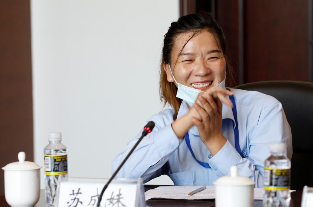 蘇成妹在座談會上分享她在海南核電工作的感受。