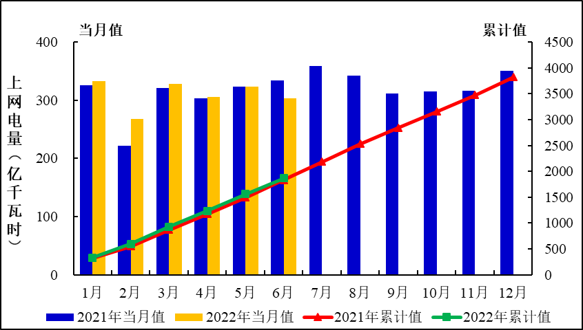 圖1:2022年1-6月全國發電量統計分布