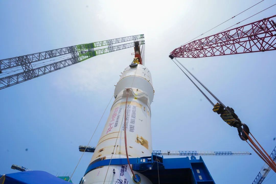 7月29日,首臺蒸汽發生器順利吊裝就位