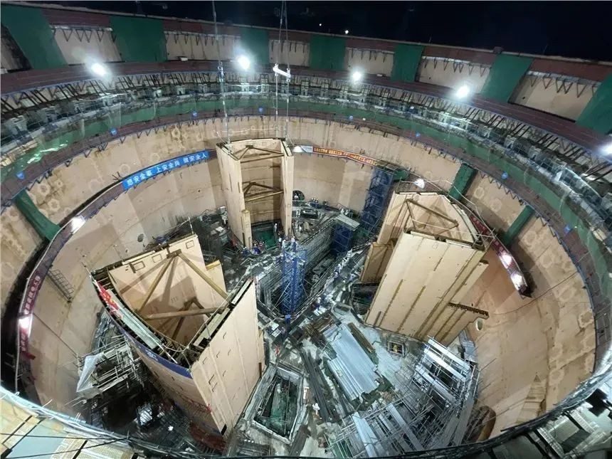 蒸汽發(fā)生器隔間三個(gè)模塊分別重139.12噸、129.58噸、136.92噸,各模塊直墻長約7米、弧形墻長約10.3米、高為14.7米,在車間預(yù)制成小模塊再運(yùn)往現(xiàn)場(chǎng)進(jìn)行整體拼裝,吊裝就位后在墻體模塊內(nèi)澆筑混凝土。其中蒸汽發(fā)生器隔間三環(huán)路模塊于8月8日9時(shí)50分起吊,歷時(shí)4.5小時(shí)完成落位;蒸汽發(fā)生器隔間一環(huán)路模塊與二環(huán)路模塊均于8月12日完成起吊與落位工作,分別歷時(shí)2小時(shí)30分與2小時(shí)10分。吊裝期間,項(xiàng)目大團(tuán)隊(duì)通力協(xié)作、密切配合,在一天內(nèi)完成兩大模塊的次第吊裝。
