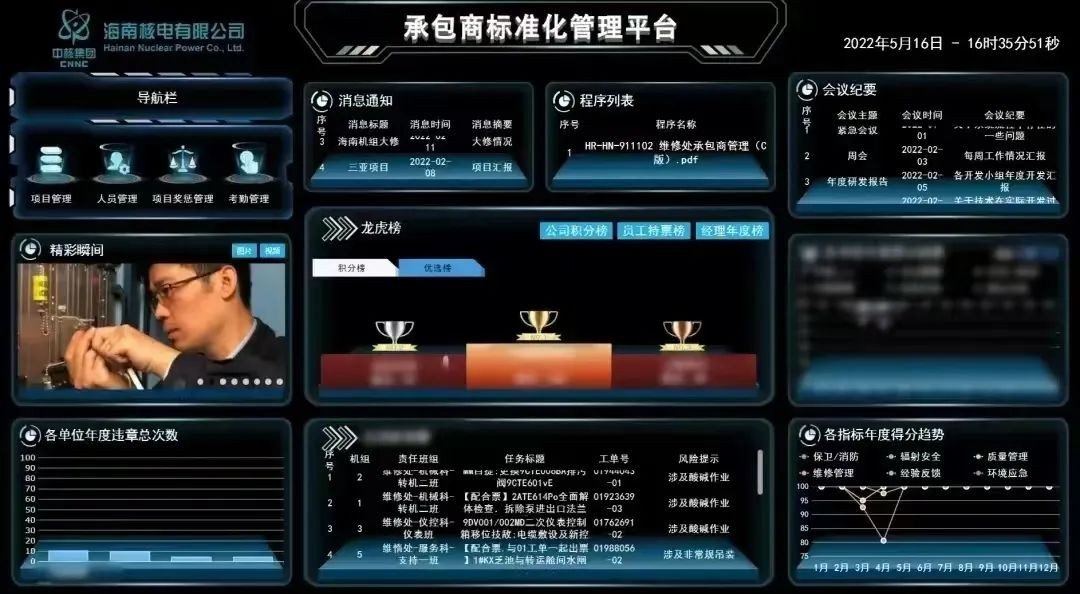 成立“數字維修,承包商可視平臺”黨員突擊隊,針對承包商管理業務上的數據多、人員多、表單多、領域廣等特點,聯合信息文檔黨支部開展“承包商標準化管理平臺”建設工作,旨在聚焦生產一線,實現海南核電承包商管理“數字化、智能化、可視化”的全新階段,以承包商標準化管理平臺軟件為媒介,不斷推動高質量維修全流程管理,助力海南核電打造創新模式,協同共進,實現數據驅動精細管理目標。