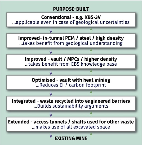 從質疑“傳統(tǒng)”處置方案的出發(fā)點出發(fā),利用當前關于深層地質條件、工程和材料技術,以及安全評估方法的知識庫,可以探索廣泛的處置概念。