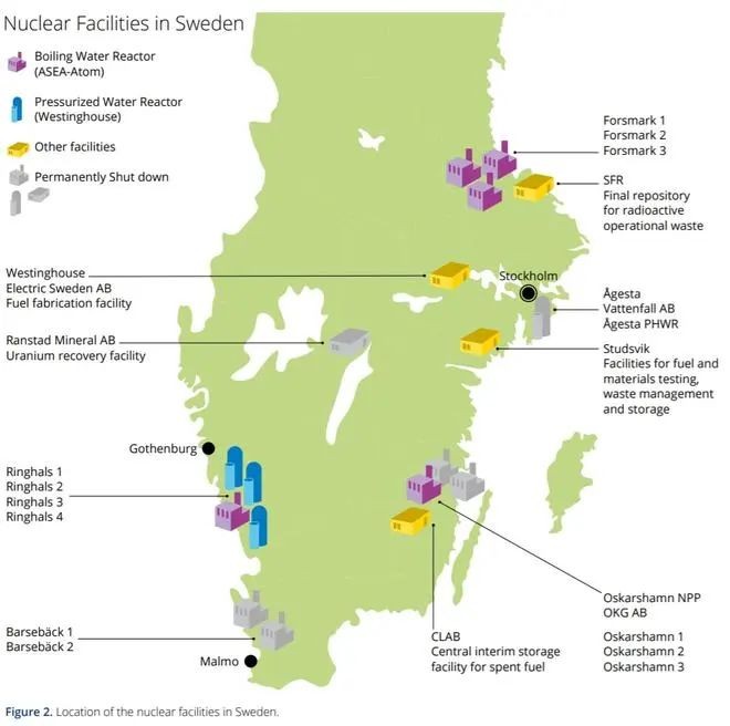 該國最初的反應堆——位于巴塞巴克(Barseback)、林格爾斯(Ringhals)、福斯馬克和奧斯卡沙(Oskarshamn)的四個地點——有五個反應堆仍在運行,兩個在林格爾斯,兩個位于福斯馬克,一個在奧斯卡沙。