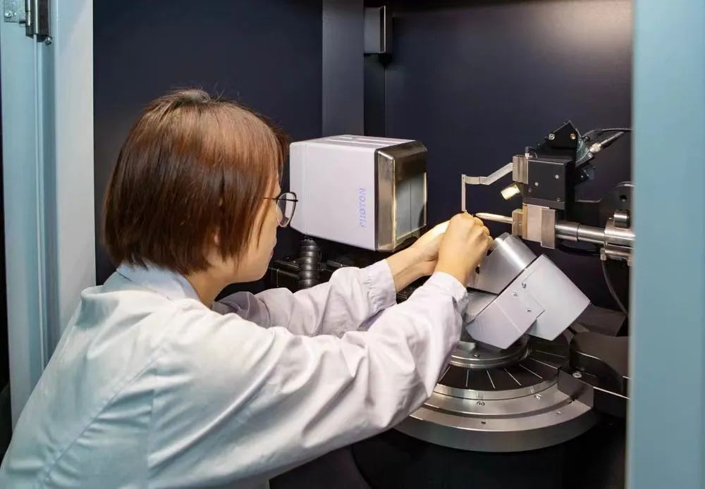 緊接著,所切下的顆粒中,唯一的一顆可用于后續(xù)驗證的顆粒被最終確定下來。李婷所帶的礦物研究團隊利用單晶X射線衍射儀對潛在的新礦物開展了后續(xù)的精細結(jié)構(gòu)解譯,準確確定了這個礦物的晶體結(jié)構(gòu),最終確定這個新礦物。