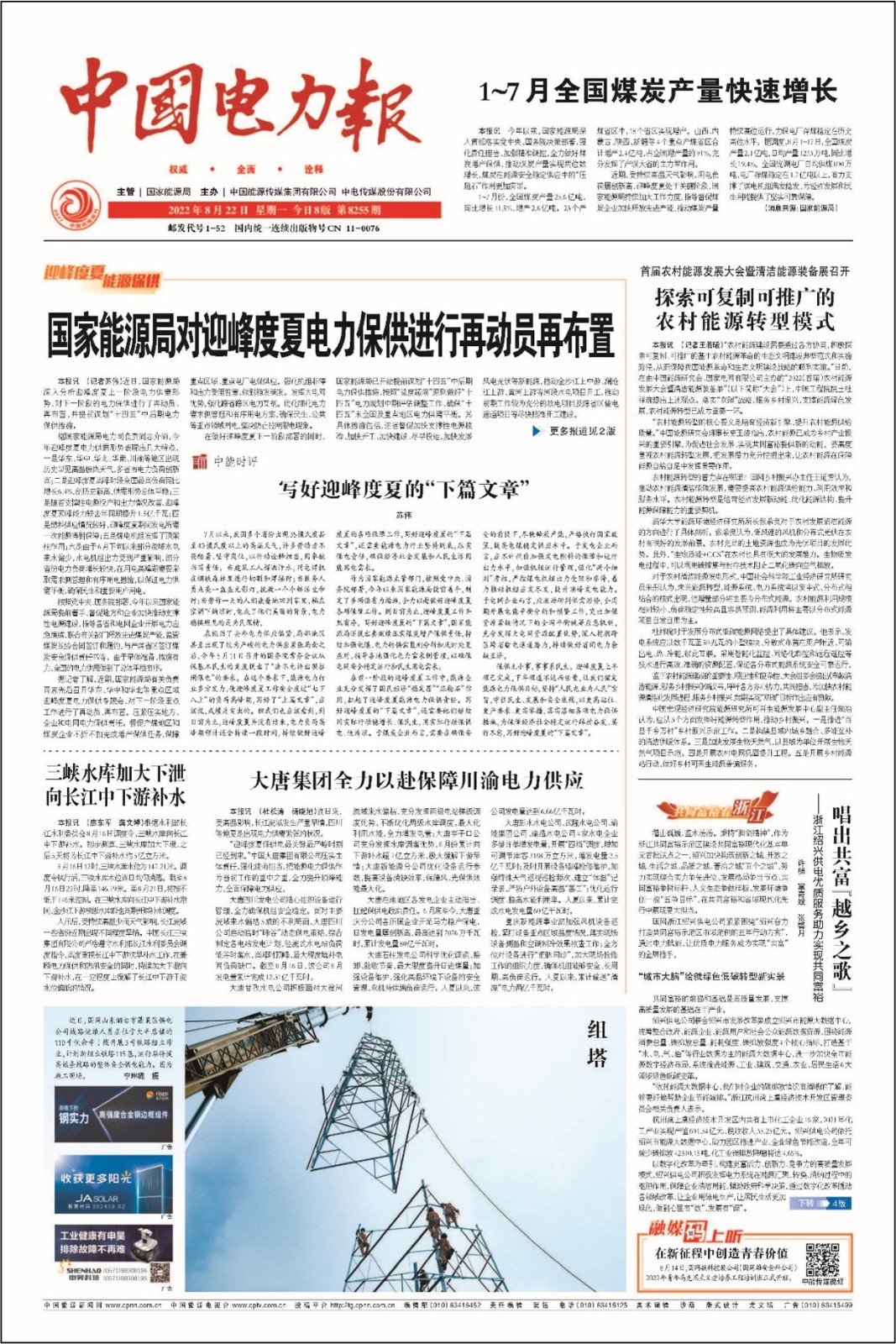 8月22日,由國家能源局主辦的中國電力報在頭版刊發(fā)了題為《探索可復(fù)制可推廣的農(nóng)村能源轉(zhuǎn)型模式》專題報道,文章中報道了大會的成功召開以及重點領(lǐng)導(dǎo)、嘉賓的發(fā)言和演講。文中提到,落實“雙碳”戰(zhàn)略,服務(wù)鄉(xiāng)村振興,支撐能源綠色發(fā)展,農(nóng)村能源轉(zhuǎn)型已成為重要一環(huán),與會專家與嘉賓闡述了農(nóng)村能源轉(zhuǎn)型的核心要義、著力點和發(fā)展方向,并對農(nóng)村清潔能源發(fā)電形式、發(fā)展分布式低碳能源網(wǎng)絡(luò)提出了具體建議。