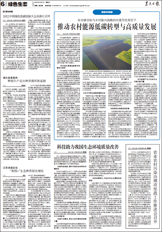 8月22日,由人民日報主管中國能源報社主辦的中國能源報在地方·基層板塊發(fā)表頭條文章《清潔能源產(chǎn)業(yè)成鄉(xiāng)村振興新引擎》,報道了大會的成功召開以及重要領(lǐng)導(dǎo)、嘉賓的部分發(fā)言和演講。文中提到,當(dāng)前農(nóng)村新能源和可再生能源資源優(yōu)勢明顯,促進清潔能源和能源轉(zhuǎn)型發(fā)展,可拉動農(nóng)村地區(qū)的經(jīng)濟增長,促進產(chǎn)業(yè)加速融合,助力碳中和目標(biāo)的實現(xiàn)。