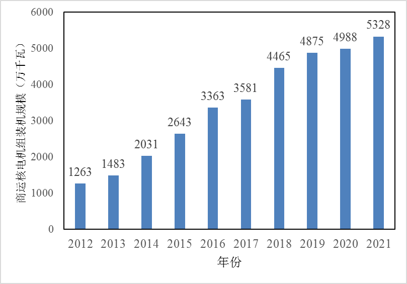截至目前,我國商運核電機組53臺,是2012年的3.5倍(2012年底,15臺),總裝機容量5560萬千瓦,是2012年的4.4倍(2012年底,1260萬千瓦),在建核電機組23臺,總裝機容量2419萬千瓦,在建規模繼續保持世界領先,在運在建核電裝機容量居全球第二。核電發電量在當前我國電力結構中的占比達到了5%左右,較十年前的約2%有了大幅度提高。自1991年我國首臺核電機組并網發電以來,核能累計發電量已超過3.3萬億千瓦時,相當于減少二氧化碳排放24億噸以上。