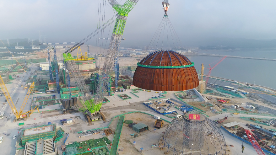 主題片中展示的正是華龍一號漳州核電2號核島穹頂吊裝時的鏡頭塔吊上“中核二四公司”6個字分外顯眼作為華龍一號全球首堆和批量化首堆的土建施工單位公司如何完成這堪稱“刀鋒對接”般的吊裝就位?今天就帶你一探究竟。