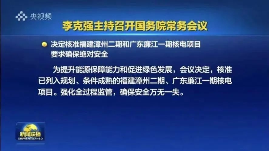 9月13日召開的國務院常務會議指出,為提升能源保障能力和促進綠色發展,會議決定,核準已列入規劃、條件成熟的福建漳州二期、廣東廉江一期核電項目。強化全過程監管,確保安全萬無一失。福建漳州二期、廣東廉江一期核電項目分別屬于中核集團和國家電投集團,各有兩臺核電機組。漳州二期采用“華龍一號”三代核電技術,廉江一期則采用CAP1000三代核電技術。4臺核電機組總投資高達800億元。到目前為止,今年國常會已經核準了5個核電項目、10臺新機組。這是繼2008年14臺機組獲批之后,中國核準核電項目和機組最多的一年。核能行業再次進入大發展階段正在逐步成為現實。