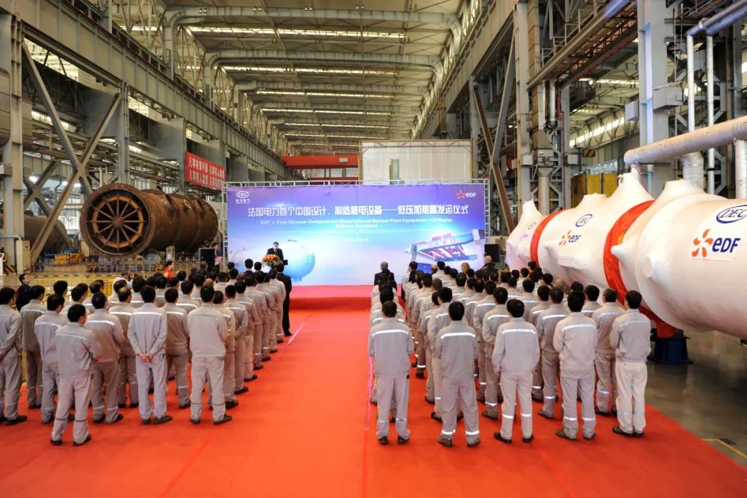 2017年2月14日,在東方電氣核電裝備制造和出海口基地,中國首臺出口歐洲的核電低壓加熱器發運。這是法國電力集團實施核電全球化戰略采購后的第一個投向中國的采購訂單,東方電氣集團通過該項目掌握了歐洲壓力容器指令及標準,成為法國電力集團在中國確立的首家核電產品合格供應商,這也是中國核電走向歐洲市場的重要標志。此外,東方電氣集團積極配合中核、中廣核、國家電投等企業集團,以精益制造、優質服務及誠信透明的核安全文化等優勢推進中國核電“走出去”。