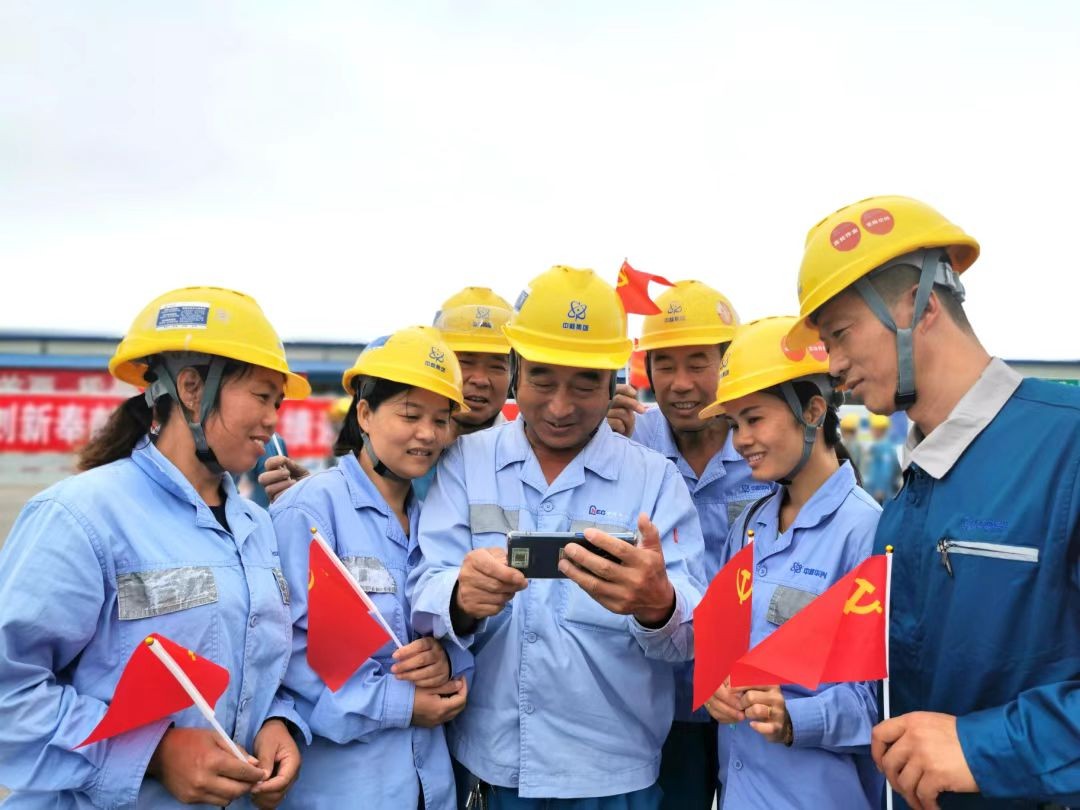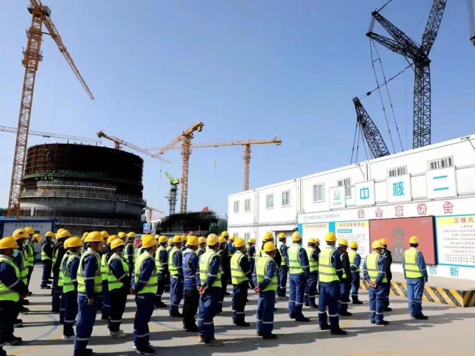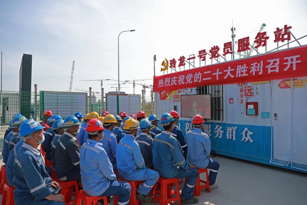 海南核電玲龍一號建設者在工程現場收看大會盛況