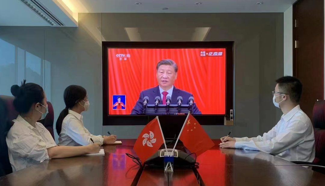 香港財資公司員工收看黨的二十大開幕會。
