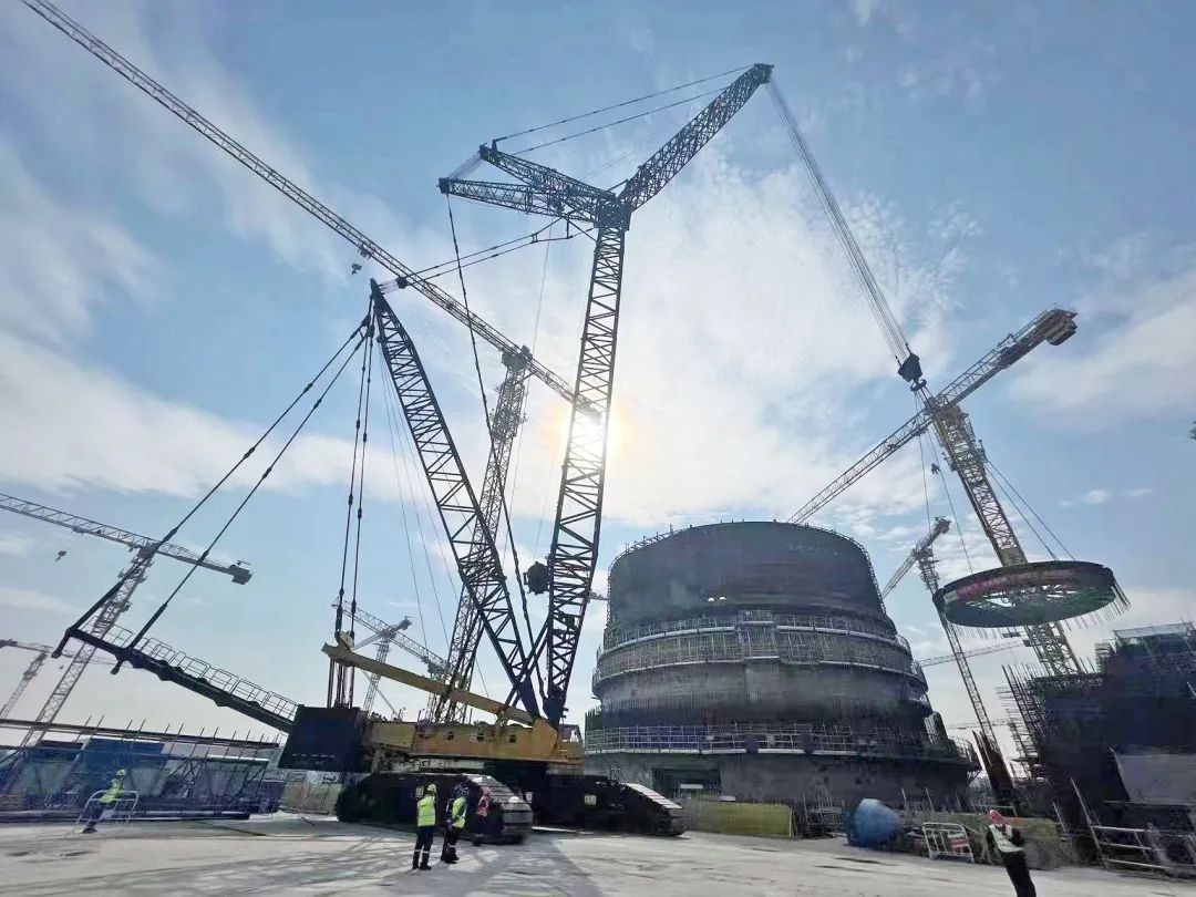 中核機(jī)械工程圓滿完成田灣核電站8號機(jī)組首個大件設(shè)備吊裝。田灣8號機(jī)組首臺大件設(shè)備堆芯捕集器CC容器正式于20日上午12:30吊裝正式開始,在項(xiàng)目全體成員的高效協(xié)同下,于14:59實(shí)現(xiàn)設(shè)備精準(zhǔn)就位,標(biāo)志著8號機(jī)組安裝施工工作進(jìn)入新階段。此次吊裝選用1000噸履帶式起重機(jī)執(zhí)行本次施工任務(wù),設(shè)備實(shí)際吊裝重量達(dá)173噸。