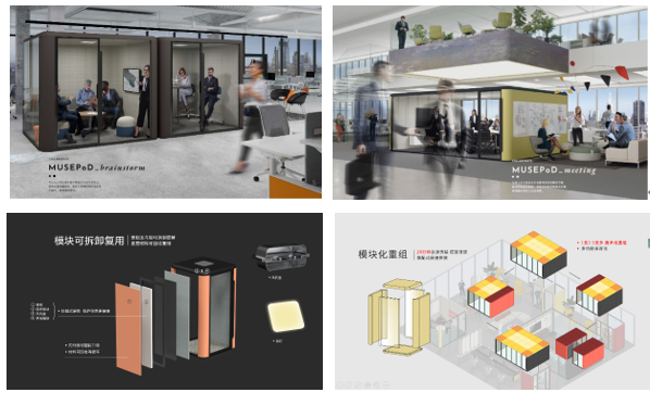 現(xiàn)如今,快節(jié)奏、快生活的現(xiàn)狀使得組織比以往更需要一個(gè)更具多樣性的、動(dòng)態(tài)靈活的、可低成本重塑的高適應(yīng)力辦公場(chǎng)所。這種新需求要求辦公場(chǎng)所支持個(gè)人及協(xié)作的不同工作行為,重視員工的私密性體驗(yàn),解決空間多樣性的問(wèn)題。同時(shí),需要關(guān)注空間的動(dòng)態(tài)靈活,匹配組織發(fā)展,可低成本重塑的面向未來(lái)的剛性需求?;诖耍Ψ娇靷}(cāng)推出一款極速可重組的模塊化靈動(dòng)隔間系統(tǒng):MUSEPOD,解決辦公場(chǎng)所的新需求。單人Musepod可實(shí)現(xiàn)28分鐘的急速快裝,施工不影響員工工作,提高施工效率,避免工期遞延帶來(lái)的一些隱性沉沒(méi)成本。在快節(jié)奏化的辦公場(chǎng)所,顯著提升了工作便捷度,大力提高施工效率。MX系列產(chǎn)品采用極速拼接及重組原理,可根據(jù)空間需求的變化靈活變動(dòng)大小及功能,實(shí)現(xiàn)尺寸及功能的重置,適應(yīng)組織的快速變化,反復(fù)靈動(dòng)拆組, 實(shí)現(xiàn)空間低成本重塑的新需求。