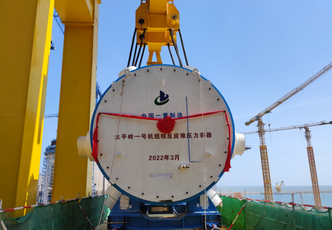 2022年10月26日上午10時(shí),太平嶺一期工程1號(hào)機(jī)組反應(yīng)堆壓力容器從1號(hào)機(jī)組臨時(shí)龍門(mén)架區(qū)域0m吊運(yùn)至+17.5m轉(zhuǎn)運(yùn)平臺(tái),標(biāo)志著1號(hào)機(jī)組核島主回路設(shè)備安裝工作正式開(kāi)始,較原計(jì)劃提前近2個(gè)月時(shí)間,再創(chuàng)華龍高質(zhì)量標(biāo)桿。