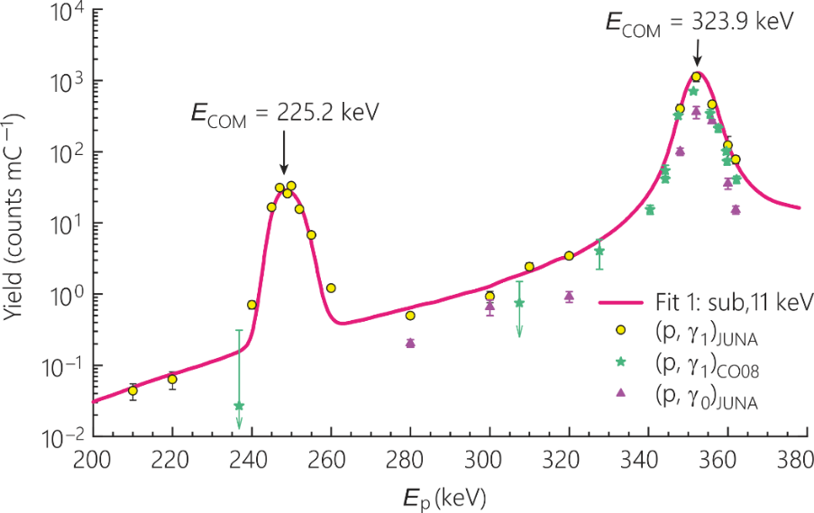 JUNA團隊測量的19F(p,γ)20Ne反應的產額曲線