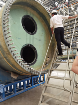 鼎和保險工作人員爬上巨大的風機葉片,認真研究內部構造,了解風機的硬度和延展度