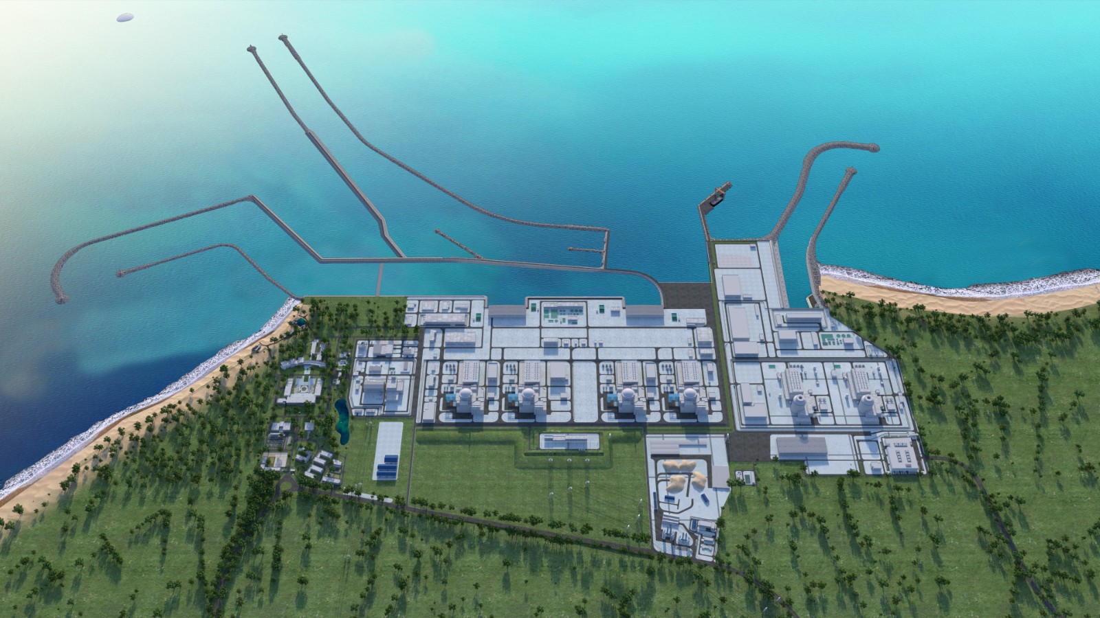 華能海南昌江核電基地一期兩臺65萬千瓦機組持續安全穩定運行,二期兩臺120萬千瓦華龍一號機組已于2021年全面開工建設,預計2027年全部投產商運。