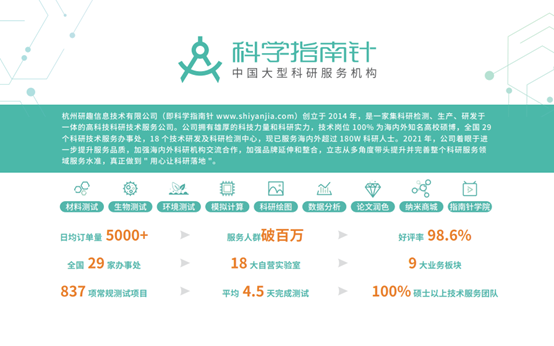 杭州研趣信息技術(shù)有限公司(科學(xué)指南針)于2014年注冊成立,曾獲得由經(jīng)緯中國獨家投資的數(shù)千萬元A輪融資。自成立以來深耕理工類專業(yè)科研服務(wù)需求,包括不限于材料、生物與環(huán)境檢測服務(wù),模擬計算、科研繪圖、論文潤色,數(shù)據(jù)分析,未知成分分析,耗材試劑等領(lǐng)域,堅持打磨核心技術(shù)與服務(wù)能力,立足中國,服務(wù)全球。