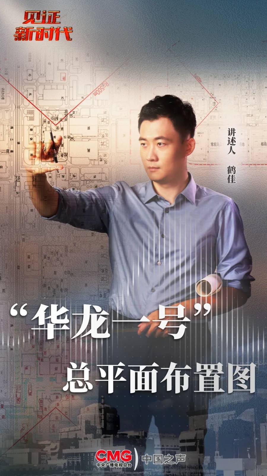 ▲ 聽主持人鶴佳講述“華龍一號”總平面布置圖背后的故事