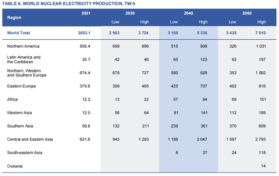 2022年9月26日,國(guó)際原子能機(jī)構(gòu)(IAEA)發(fā)布2022年版年度報(bào)告《直至2050年能源、電力和核電預(yù)測(cè)》。這是該系列的第42版預(yù)測(cè)報(bào)告,概述了截至2021年底國(guó)際原子能機(jī)構(gòu)各成員國(guó)的核電發(fā)展?fàn)顩r,并根據(jù)國(guó)際能源署(IEA)《2021年世界能源展望》和美國(guó)能源信息管理局(EIA)《2021年國(guó)際能源展望》等研究報(bào)告,對(duì)全球以及各地區(qū)直至2050年的能源、電力和核電發(fā)展情況進(jìn)行了預(yù)測(cè)。