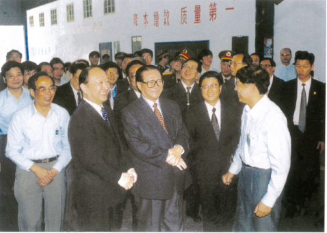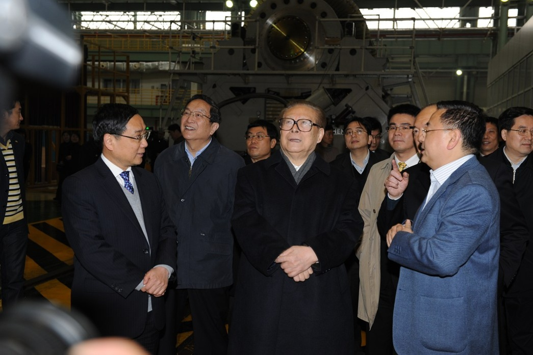 4月12日 江澤民同志在中央政治局委員、市委書記俞正聲陪同下,視察上海電氣臨港重裝備制造基地。上海電氣集團黨委書記、董事長徐建國向江澤民同志匯報了上海電氣建設臨港基地、發展高效清潔能源和核電產業的情況。