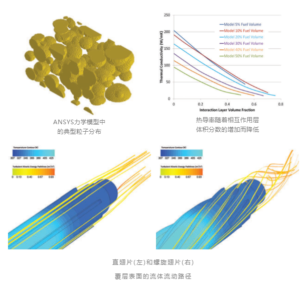 【案例描述】:Ansys Mechanical評估低鈾燃料的導熱系數(shù),Ansys Fluent模擬三種傳熱模式:對流、傳導和輻射。數(shù)值模擬預測可為候選燃料設計的性能和安全性分析提供支持,在不同的功率和入口流量條件下觀察到的趨勢將有助于優(yōu)化物理實驗的性能和安全性。