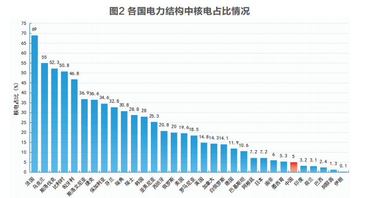 我國(guó)核電發(fā)電量為407.5太瓦時(shí),位居世界第二,僅次于美國(guó),但是在我國(guó)電力結(jié)構(gòu)中的占比僅為5%,在全球32個(gè)有核電的國(guó)家中,我國(guó)核電占比僅排在第27位。