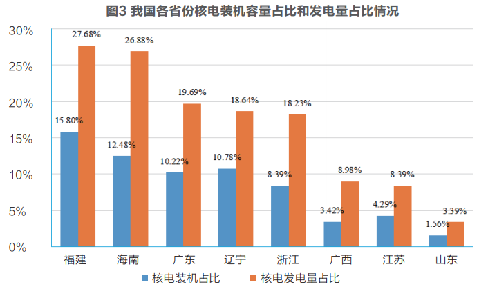 從具有核電的省份來(lái)看,核電在當(dāng)?shù)仉娏Y(jié)構(gòu)中的占比已經(jīng)達(dá)到發(fā)達(dá)國(guó)家水平,如福建、海南的核電發(fā)電量在其電力結(jié)構(gòu)中占比將達(dá)到1/3,廣東、遼寧、浙江等三省的核電發(fā)電量也將近20%。