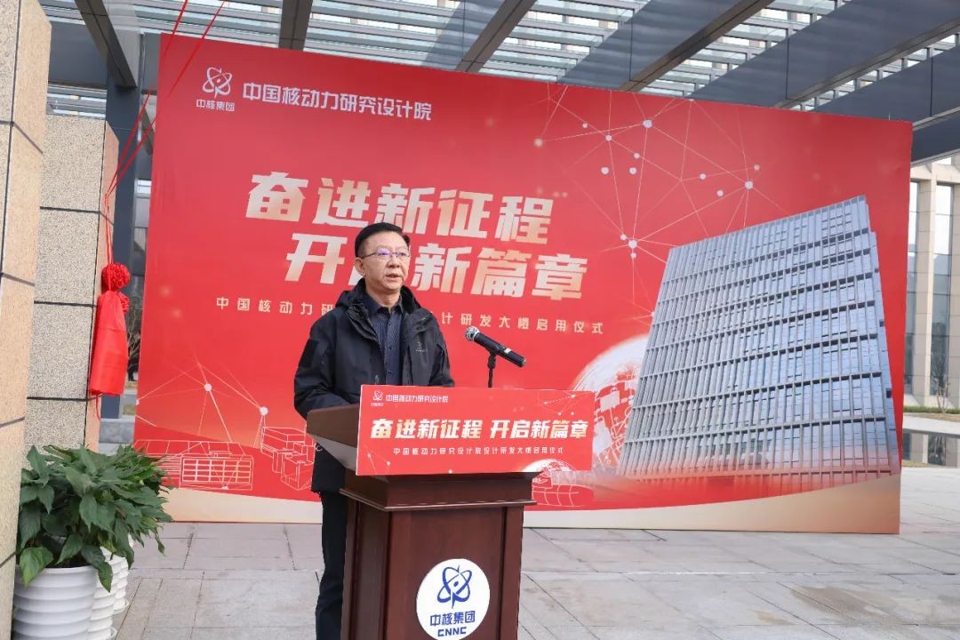 王叢林強調,設計研發大樓是一座高起點規劃、高水平設計和高標準建設的大樓,將有力提升核動力研發設計能力和水平。2022年,設計所全體干部職工勇于擔當、甘于奉獻、攻堅克難、砥礪前行,圓滿地完成了年度任務目標,成績值得充分肯定。關于下一步工作,王叢林指出,一是深入學習貫徹黨的二十大精神,確保黨的二十大部署在核動力院落地生根、開花結果;二是要以此次整體搬遷為契機,強化系統思維,加強體系能力布局,整合軟、硬件資源和人力資源,凝聚創新資源,充分發揮科技創新體系整體效能,助力院“一體兩翼三高”奮斗目標早日實現;三是嚴格履行責任單位職責,確保快速、平穩完成搬遷工作。設計所所長彭航代表設計所發言。他表示,設計所今天迎來了喬遷之喜,得益于院領導的親切關懷,得益于院屬職能部門、各單位的鼎力支持。設計所將以設計研發大樓這個全新的設計研發平臺為新起點,再度揚帆起航;守初心擔使命,堅決扛起時代重任;攻難關破瓶頸,堅決打贏科技創新攻堅戰;凝動力激活力,堅實抓好基層建設;應變局開新局,堅定闖出核動力事業發展新天地。在一陣陣禮炮聲中,王叢林、唐傳寶、彭航和李鋒同志共同為設計研發大樓揭牌,設計研發大樓暨七號樓正式啟用。